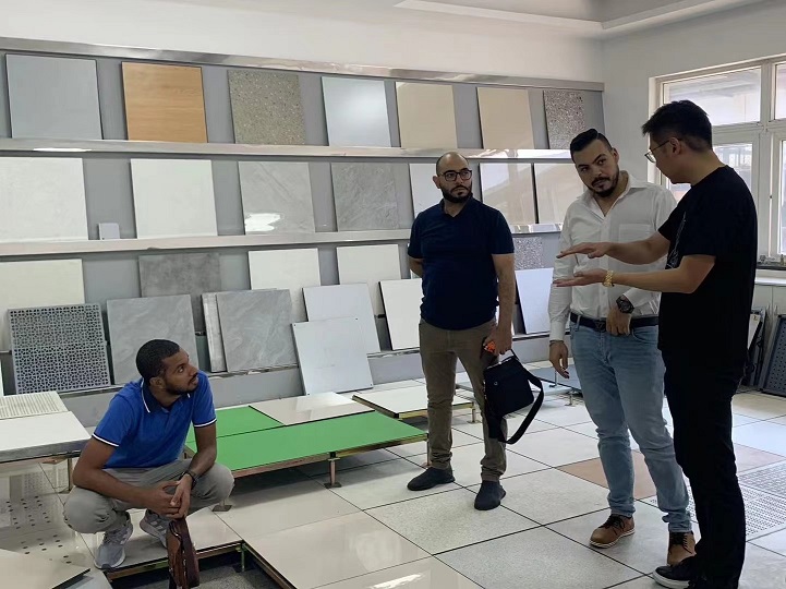 在这里,徐总亲自向贵客们展示了防静电地板的生产工艺,并详细介绍了我们的每一款产品。贵客们对我们的样板手册产生了浓厚的兴趣,他们一边欣赏,一边聆听徐总的细致讲解。